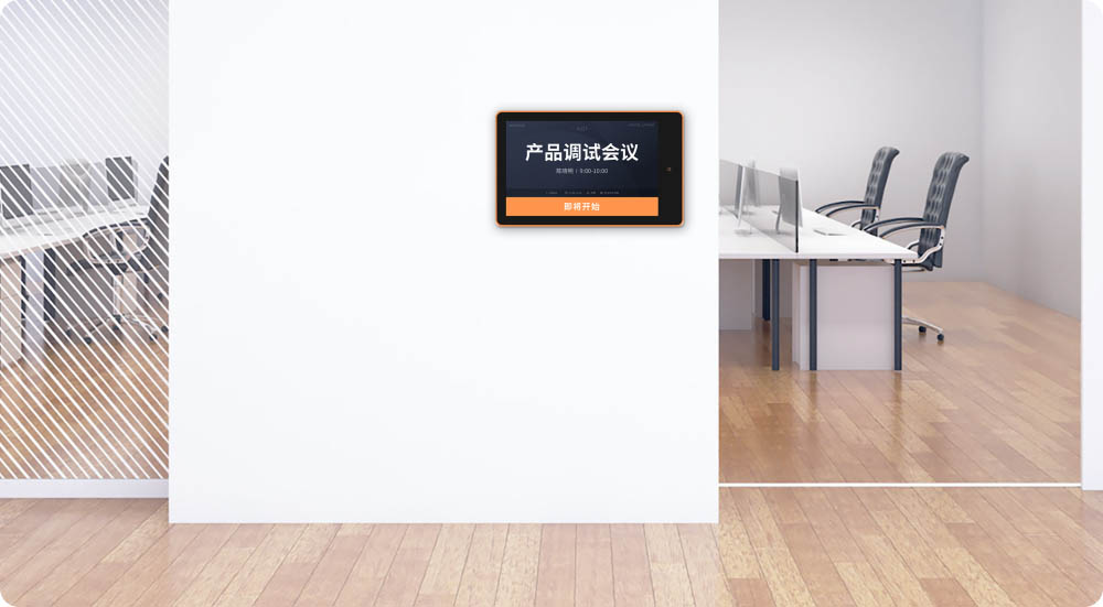 会议门牌:会议轻松预约,会议状态同步、人脸识别签到、集控管理。